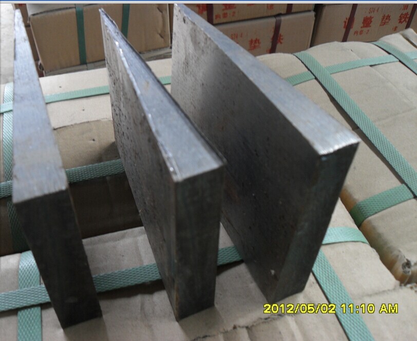 常用的斜铁铁用普通碳素钢钢板、型钢、铸铁等材料按一定的规格尺寸加工制成,也有按设备的特殊要求加工制作的,如不锈钢垫铁、钩头成对斜垫铁等。